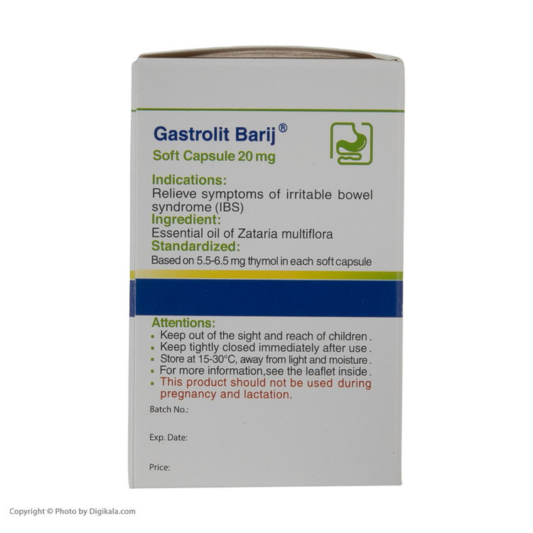 کپسول گاسترولیت 20 میلی گرمی باریج اسانس بسته 30 عددی