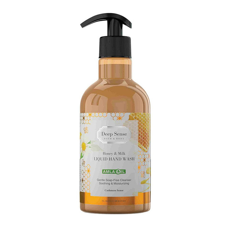 مایع دستشویی یکی از محصولات شوینده و پاک کننده دست است که نسبت به صابون سازگاری بیشتری با پوست دارد. مایع دستشویی برخلاف صابون پوست دست را خشک نمی کند و با حفظ لایه چربی پوست، نرمی و لطافت به پوست می بخشد.مایع دستشویی کرمی شیر و عسل دیپ سنس شوینده ملایم غیرصابونی است که ضمن شستوشوی کامل دست، سبب حفظ و افزایش رطوبت و نرمی پوست میگردد و از پیری پوست دست جلوگیری میکند.این محصول ضمن اثر پاک کنندگی، پوست دست را مرطوب، نرم و لطیف می کند. این مایع دستشویی فاقد مواد صابونی است.