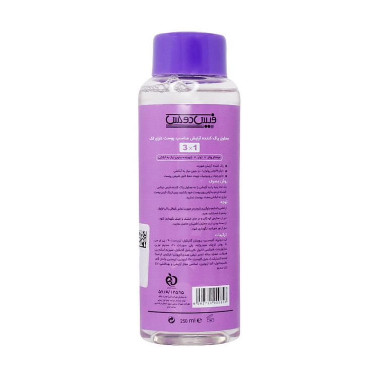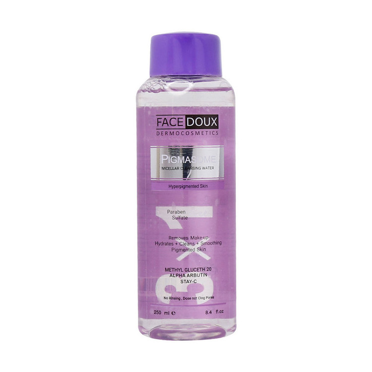 محلول پاک کننده آرایش پیگمازوم فیس دوکس با فرمولاسیونی منحصر به فرد، یک محصول سه کاره با توانایی پاک کنندگی پوست به عنوان میسلار واتر، تونر و شوینده بدون نیاز به آبکشی، آلودگی ها، چربی ها و باقی مانده مواد آرایشی را به خوبی از روی پوست دارای لک رفع میکند. محلول پاک کننده آرایش پیگمازوم فیس دوکس در کمرنگ شدن تدریجی لک و تیرگی ها موثر است و دارای اسیدیته سازگار با پوست بوده و سبب حفظ تعادل PH پوست میشود. این محصول با داشتن ترکیبات پروبیوتیک در حفظ فلور طبیعی پوست موثر است. محلول پاک کننده آرایش پیگمازوم فیس دوکس فاقد پارابن و سولفات بوده و در حجم 250 میلی لیتر تولید شده است.