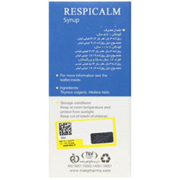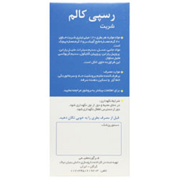 شربت رسپی کالم نیاک حاوی گیاهان آویشن و پیچک می باشد که از دیرباز جهت درمان علایم سرفه و برونشیت مورد استفاده قرار می گرفته اند. این شربت بر اساس وجود تیمول استاندارد گردیده است.