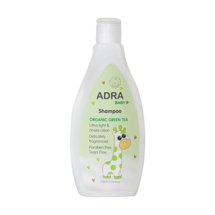 شامپو سر کودک آدرا حاوی عصاره برگ چای سبز مناسب موهای لطیف و ظریف کودک میباشد. بدون اشک و سوزش چشم بوده و ویژگی نرم کنندگی دارد و از وز شدن مو جلوگیری میکند دارای PH سازگار با پوست بوده و فاقد پارابن میباشد