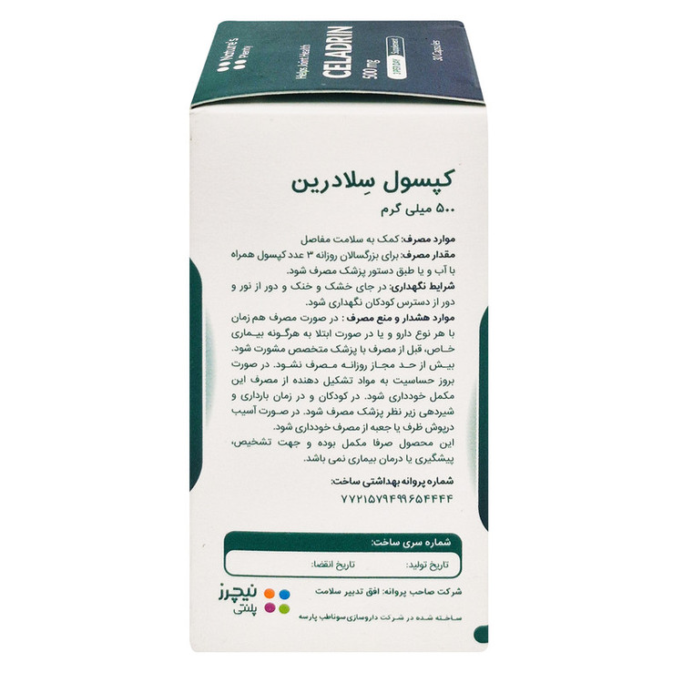 روش مصرف: روزانه ۳ کپسول یا طبق تجویز دکتر با آب مصرف نمائید.