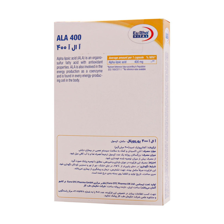 روش مصرف: در بزرگسالان روزانه یک عدد کپسول آلفا لیپوئیک اسید 400 یوروویتال ترجیحا همراه غذا و با آب کافی میل شود.