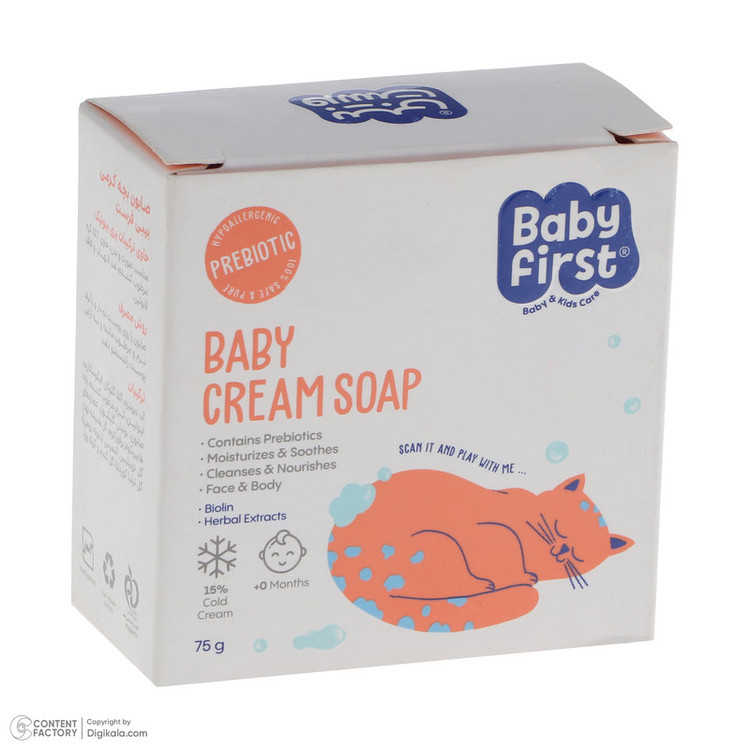 صابون بچه کرمی حاوی %15 کرم مرطوبکننده و عصارههای گیاهی، نرمکننده و التیامبخش پوست حساس نوزاد و کودک میباشد.حاوی ترکیبات پریبیوتیک، موثرترین عامل تقویت کننده وسد دفاعی پوست میباشد.