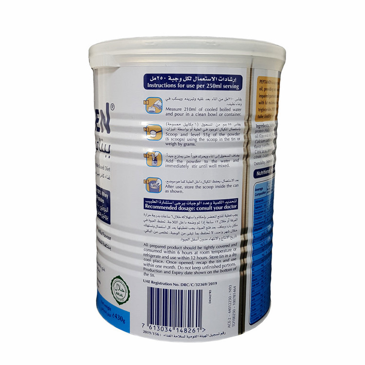 طرز تهیه یک وعده 250 (میلی لیتر): 210 میلی لیتر آب جوئشیده خنک را در ظرفی تمیز ریخته و 55 گرم پود(6 پیمانه) در آن افزوده و به سرعت هم بزنید تا کاملا مخلوط شود.بعد از مصرف، پیمانه را درون قوطی نگهداری نمایید.