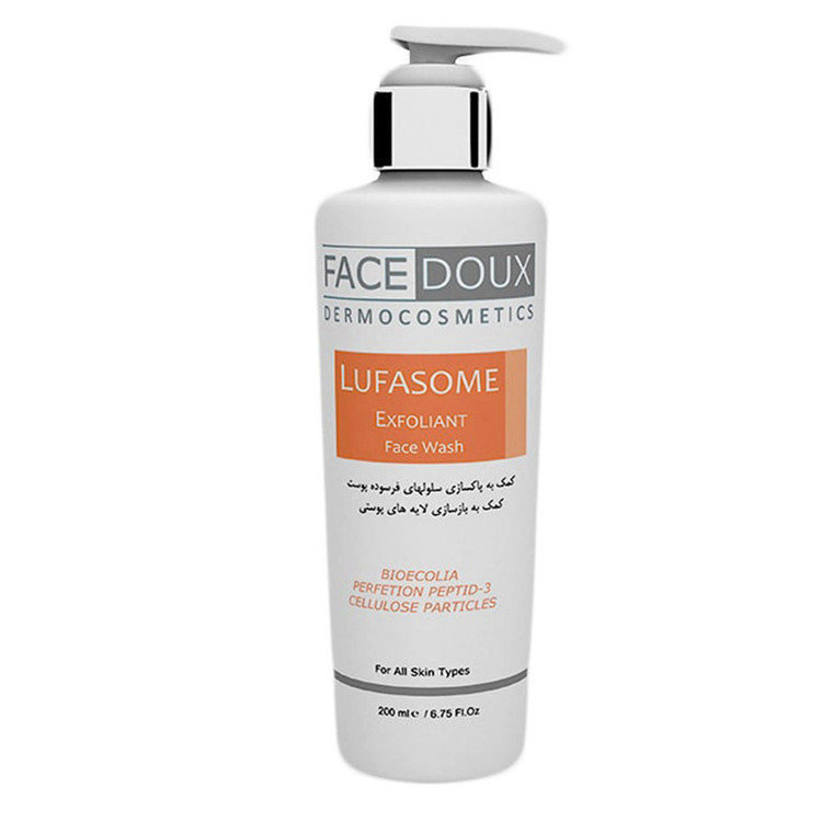 ژل شستشو صورت فیس دوکس مدل LUFASOME حجم ۲۰۰ میلی لیتر حاوی دانه های ساینده لوفازوم فیس دوکس یک محصول مناسب جهت پاکسازی پوست است. این محصول علاوه بر خاصیت پاک کنندگی ملایم خود دارای ذرات ساینده ای است که موجب لایه برداری ، پاکسازی و برداشتن سلول های مرده پوست می گردد.این محصول محصولی حاوی سیستم محافظتی پربیوتیک است و مناسب برای روتین هفتگی لایه برداری صورت جهت پاکسازی سلول های مرده و تعدیل فرایند دسکوامیشن پوست صورت (لایه برداری طبیعی) در بهبود و کاهش لک ها و چروک های سطحی و ضایعات آکنه است.تسریع روند بازسازی و تولید سلول های جدید برای داشتن پوست تازه تر و با طراوت تر، تصحیح تکسچر پوست و کاهش عمق چین و چروک و رفع انسداد منافذ پوست، داشتن پوست یک دست تر با درخشندگی متفاوت، رطوبت رسانی قوی به پوست صاف شدن شبکه میکرورلیف و بهبود وضعیت توپوگرافی پوست (خطوط ریز سطح پوست مهم در میزان پیری پوست)، ریسورفیسینگ پوست و تغییر ظاهر پوست و کاهش ظاهر نامطلوب چروک، اسکار ( جای جوش ) و دیگر بی نظمی های سطح پوست از سایر ویژگی های این محصول می باشد.