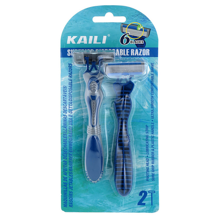 خود تراش 6 لبه صابون دار 2 عددی حاوی ویتامین Eو و آلوئه ورا دارای دسته ارگونومی .ضد لغزش و سری انعطاف پذیر