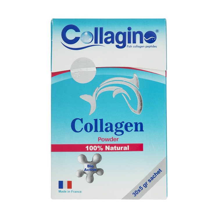 ساشه کلاژن 5 گرمی کلاژینو بسته 30 عددی با تامین کلاژن پوست و عضلات موجب حفظ سلامت و زیبایی پوست، مو و ناخن شده است. همچنین در کنترل وزن، تامین پروتئین ورزشکاران و حفظ سلامت استخوان و مفاصل نیز موثر است. اصلیترین ساختار تشکیل دهنده بافت پوست، مو و ناخن کلاژن است که بدن بهطور طبیعی قادر به تولید آن است. اما متاسفانه با افزایش سن تولید این اکسیر جوانی در بدن کاهش پیدا میکند. کاهش تولید کلاژن از اصلی ترین عوامل درونی بدن است که موجب ظهور نشانههای پیری میشود. کلاژینو اولین پودر خالص کلاژن خوراکی وارداتی از کشور فرانسه بوده و بهصورت بایواکتیو، با جذب بسیار بالا و فاقد طعم و بو و مواد افزودنی است. پودر کلاژن کلاژینو با قابلیت جذب بسیار بالا از کلاژن ماهی، در اروپا از مواد اولیه مرغوب پوست ماهی تهیه میشود. به همین دلیل با نام پودر کلاژن ماهی نیز شناخته میشود. یکی از مهمترین ویژگیهای اصلی این محصول پیشگیری از ایجاد چین و چروک به خصوص در نواحی دور چشم، افزایش استحکام مفاصل با عمل غضروف سازی و همچنین تناسب اندام است.