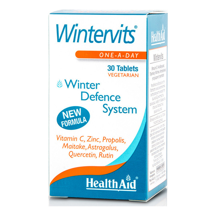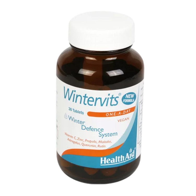 قرص وینترویتس هلث اید حاوی قارچ مرغ چوب، ویتامین C، کوئرستین، روی، بره موم و گون است که برای کمک و حمایت طولانی مدت از بدن در ماه های زمستان، زمانی که سیستم ایمنی بدن ضعیف شده و نیاز به حمایت دارد، مورد استفاده قرار می گیرد. این قرص فاقد هر گونه مخمر، گلوتن، گندم، سویا، لبنیات، شکر، نمک، رنگ مصنوعی، نگهدارنده ها و طعم دهنده ها می باشد.