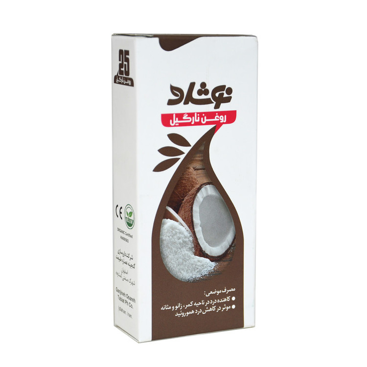 روغن نارگیل با گرید دارویی گرفنه شده از میوه نارگیل صد در صد طبیعی و فاقد هرگونه مواد شیمیایی می باشد روغن نارگیل در درمان بواسیر و تسکین درد مثانه کمر و زانو بسیار موثر است همچنین این روغن به عنوان مرطوب کننده برای پوست بکار می رود علاوه بر ان استفاده این روغن برروی مو از روند خاکستری شدن زود هنگام موی سر جلوگیر می نماید