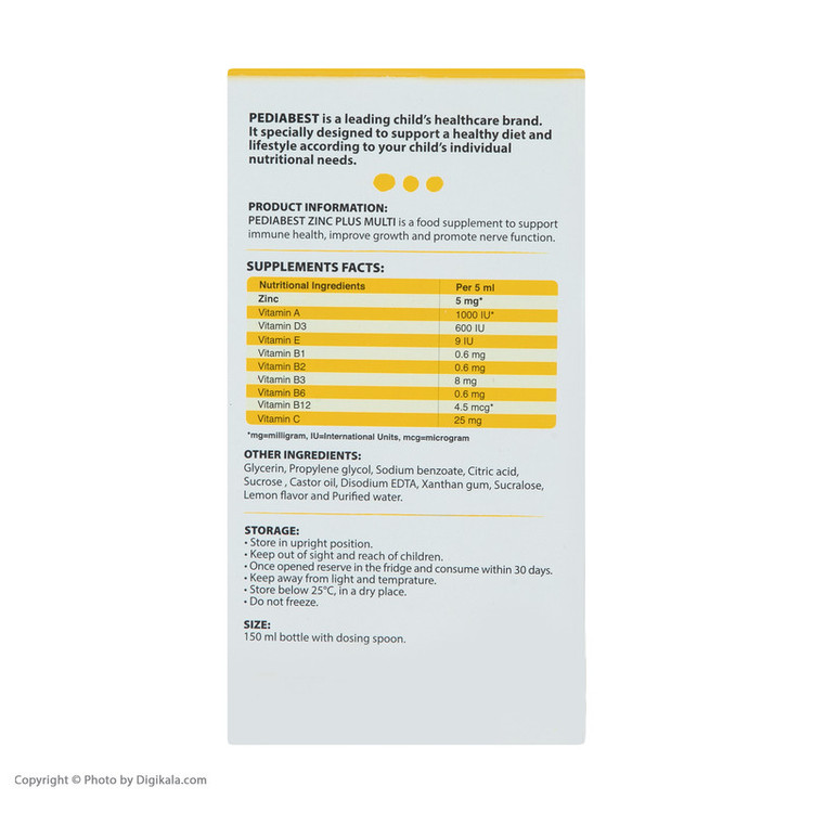 روش مصرف: کودکان 4-2 سال: روزانه 2.5 میلی لیتر