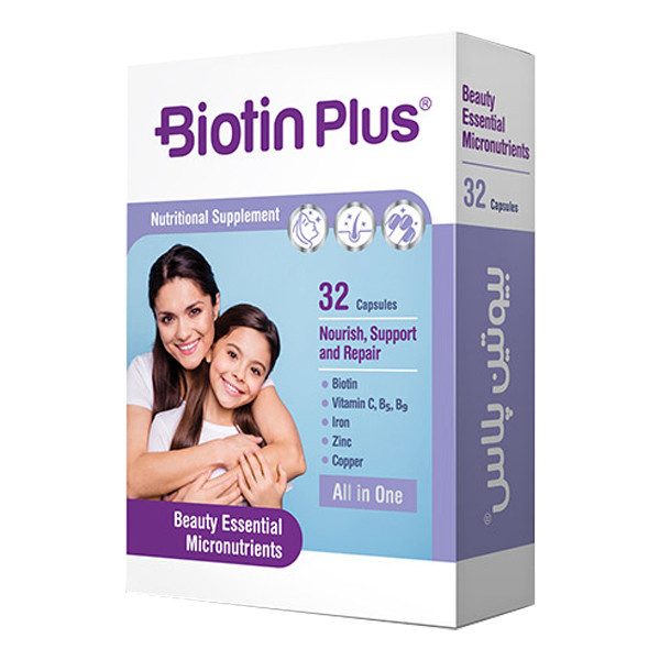 کپسول بیوتین پلاس یک مکمل مناسب سبب تقویت پوست، جلوگیری از ریزش مو، افزایش ضخامت و استحکام ناخن است. همچنین به واسطه وجود ویتامین ب 7 یا بیوتین در بهبود عملکرد سیستم عصبی و سلامت سیستم دستگاه گوارش بسیار موثر عمل میکند. کپسول بیوتین پلاس ترکیب ویژه ای از عناصر حیاتی مغذی مانند بیوتین، ویتامین C، ویتامین B5، فولیک اسید، مس، آهن و زینک را دارد که برای حفظ سلامت و زیبایی پوست، مو و ناخن استفاده میشود. این مکمل نقش حیاتی در تولید کلاژن در پوست، جلوگیری از ریزش مو، افزایش ضخامت و استحکام ناخن، طراوت و درخشش پوست را بر عهده دارد.
