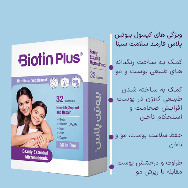 کپسول بیوتین پلاس فارمد سلامت سینا بسته 32 عددی