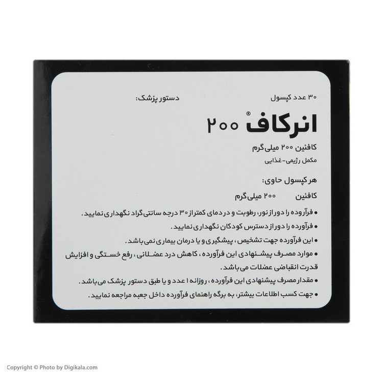 کپسول انرکاف 200 میلی گرمی الحاوی بسته 30 عددی