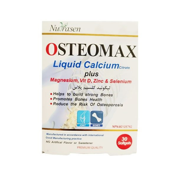 سافت ژل استئومکس لیکویید کلسیم نوتراسن فارما یک مکمل غذایی برای سلامت مفاصل و استخوان است. این محصول حاوی کلسیم، منیزیم، روی، ویتامین D3 و سلنیوم است که همگی برای تقویت استخوان ها، پیشگیری از پوکی استخوان، افزایش جذب کلسیم و حفظ سلامت مفاصل و عضلات مفید هستند.