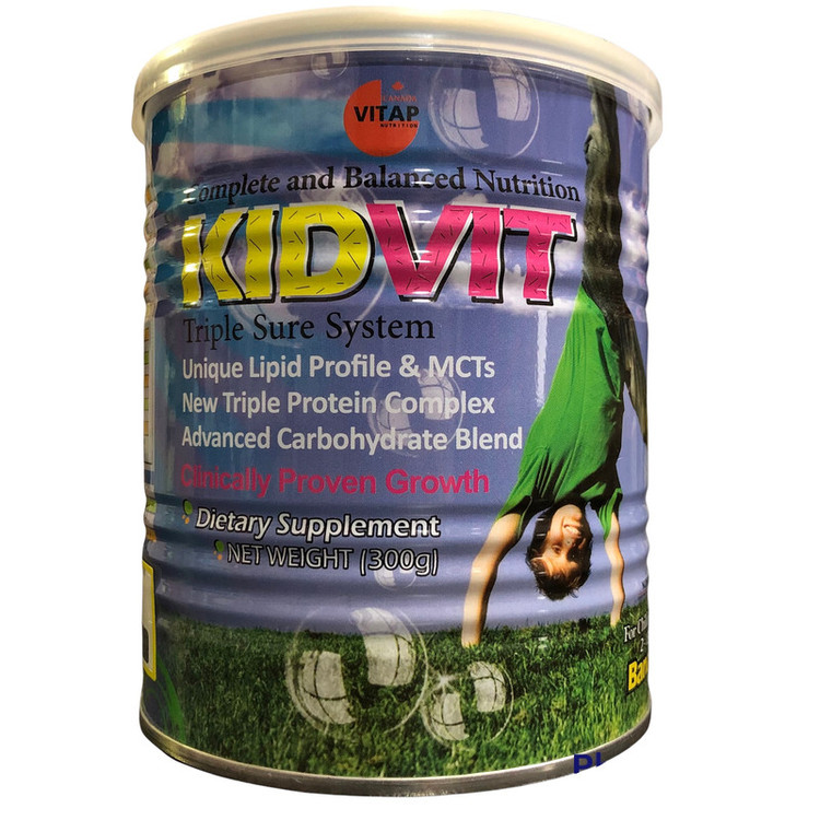 پودر افزایش قد و وزن کودکان بالای 2 سال کیدویت طعم موزی و به عنوان منبع غنی از پروتئین، کربوهیدرات و مولتی ویتامین برای رشد کودکان مورد استفاده قرار میگیرد. پودر مکمل غذایی کیدویت جهت افزایش وزن و تامین پروتئین ،کلسیم، ویتامین های گروه ب، فولیک اسید، ویتامین A و .. بسیار مفید است . این محصول جهت رشد کودکان 2-13 سال مناسب است. همچنین پودر ویدوکیت حاوی پروتئین غلیظ شده شیر و پروتئین ایزوله آب پنیر می باشد که در رشد کودکان و استحکام استخوان موثر است. سو تغذیه در کودکان و کمبود ریز مغذی ها از مشکلات مهم تغذیه ای کودکان در هر کشور محسوب می شود و موجب اختلال رشد جسمی و تکامل مغزی ،کاهش بهره هوشی،کاهش قدرت یادگیری و افت تحصیلی،افزایش موارد ابتلا به بیماریها ، پوکی استخوان و … است. مکمل غذایی کید ویت یک ترکیب پروتئینی ویژه برای تامین مواد مغذی وانرژی مورد نیاز روزانه ، افزایش رشد و نمو و جلوگیری از سوء تغذیه کودکان است ، زمانی که بدن قادر به تولید این مواد نمی باشد این مواد باید از طریق خوراکی ها و یا مکملهای غذایی تامین و جبران شوند.