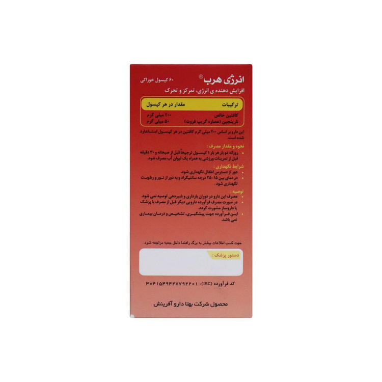 میزان مصرف مجاز روزانه دو بار هر بار یک کپسول Enetgy Herb ترجیحا قبل از صبحانه و 30 دقیقه قبل از تمرینات ورزشی به همراه یک لیوان آب مصرف شود