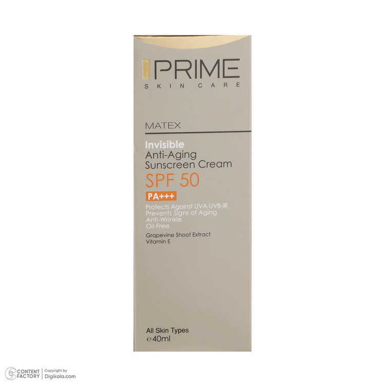 کرم ضد آفتاب و ضد چروک بی رنگ پرایم مدل Matex Colorless SPF50 مناسب انواع پوست حجم 40 میلی لیتر