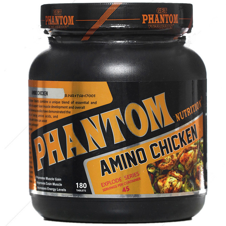 آمینو چیکن فانتوم (180 عددی)،حاوی پروتئین مرغ هیدرولیز شده و وی پروتئین بوده که سرشار از آمینو اسید ها برای ساخت عضلات خواهد بود. این مکمل حاوی منبع پروتئینی با کیفیت عالی بوده که باعث رشد و تسریع بهبودی عضلات ورزشکاران خواهد شد. پروتئین یکی از مهم ترین ماده غذایی به منظور ساخت و ترمیم عضلات و بافت های بدن میباشد. اسید های آمینه از اساسی ترین ساختار پروتئین ها بوده که وجود عنصر نیتروژن در ساختار آمینو اسیدها علاوه بر سه عنصر کربن، هیدروژن و اکسیژن تفاوت اساسی آنها با دسته کربوهیدرات ها و چربی ها میباشد. آمینو اسیدها به عضله سازی کمک شایانی خواهند کرد و از تجزیهی عضلات جلوگیری می نمایند و سبب ساخته شدن تودهی عضلانی خواهند شد. تحقیقات علمی ورزشی گفتهاند که مصرف این مکمل،کمک بسزایی عملکرد ورزشی در ورزشهای استقامتی خواهد کرد.