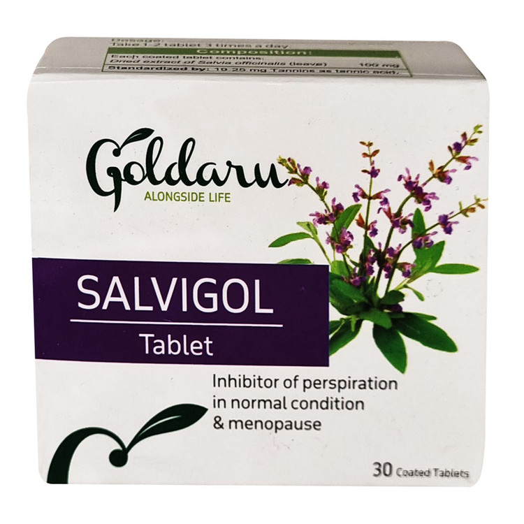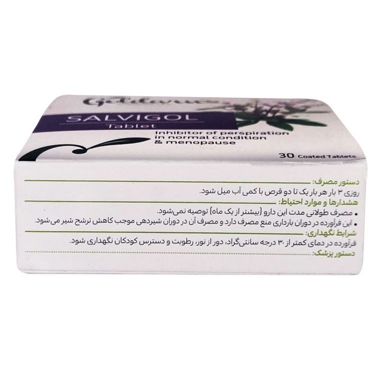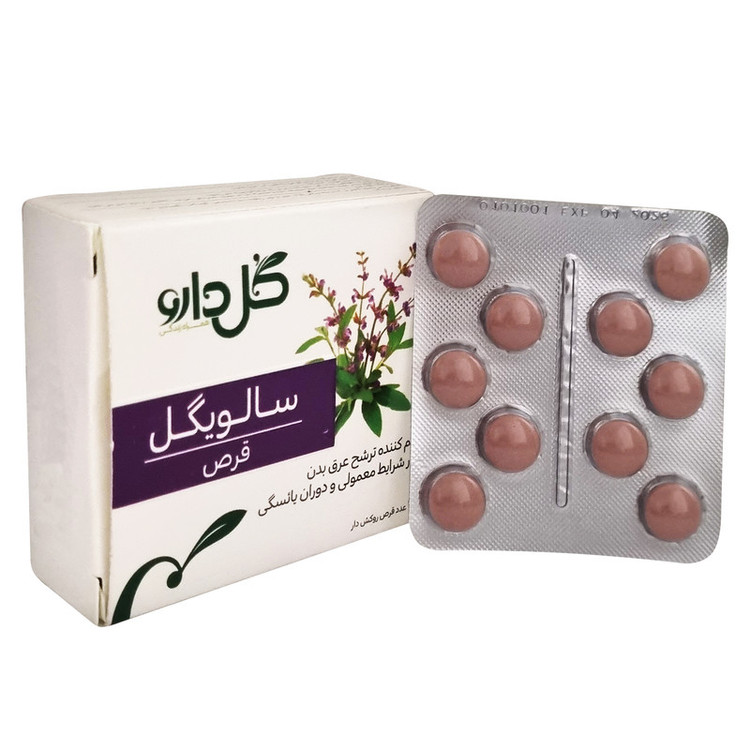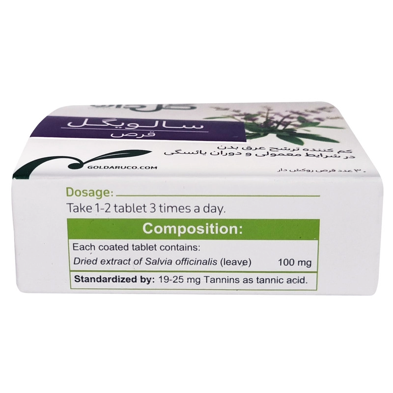 سایر توضیحات: هر قرص حاوی 100 میلی گرم عصاره خشک سرشاخه های جوان گیاه مریم گلی (Salvia officinalis)