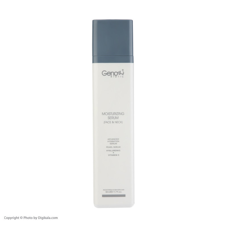 رطوبت رسانی به پوست بعد از شستشوی آن، گام دوم و جزو مهمترین مراحل روتین پوستی است که به شما در داشتن پوستی سالم و شاداب کمک می کند، تکمیل کننده گام دوم روتین پوستی سرم رطوبت رسان صورت و گردن ژنوبایوتیک است. این سرم پوستی، رطوبت رسانی فوق العاده قوی است که پوست را به طور کامل و عمیق آبرسانی می کند و از خشک شدن و کم آبی پوست جلوگیری می نماید. وجود هیالورونیک اسید با وزن مولکولی کم در فرمولاسیون این محصول، به شادابی پوست کمک می نماید، خاصیت ارتجاعی پوست را بهبود می بخشد و مانع از خروج رطوبت پوست می گردد. این محصول حاوی ویتامین سی نیز می باشد که علاوه بر اینکه آنتی اکسیدانی قوی است، به رفع کدری پوست نیز کمک می نماید. این ویتامین سرعت ترمیم سلولی پوست را بهبود می بخشد، سنتز پروتئین های ساختاری پوست را افزایش می دهد و درخشان کننده پوست است. این دو ترکیب در کنار هم علاوه بر آبرسانی کامل و عمیق به پوست، از ایجاد چروک های پوستی نیز جلوگیری می کنند و مانع از پیری زود رس پوست می گردند. همچنین عصاره مروارید موجود در فرمولاسیون این سرم آبرسان، حاوی مواد معدنی است که پوست برای رشد سلولی به آن ها نیاز دارد.