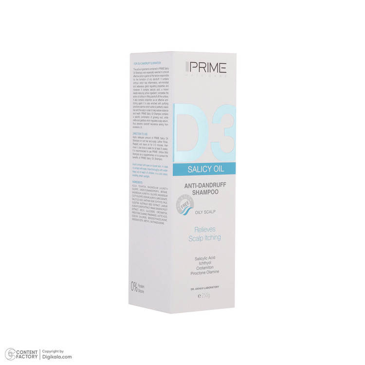 شامپو ضد شوره پرایم مدل Salicy Oil D3 مناسب موهای چرب حجم 250 میلیلیتر