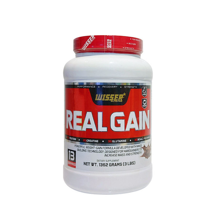 رئال گین ویثر 1362 گرمی در تمرینات سخت و طولانی به بدن شما سوخت و انرژی لازم را میرساند و سبب رشد عضلات خواهد شد. به علاوه این مکمل ورزشی از تجزیه عضلات در اثر تمرینهای سخت و طاقت فرسا جلوگیری میکند. هر وعده مصرف از این دارای 650 کالری بوده و در ترکیبات آن انواع ویتامینها، آنزیمها، مواد معدنی و آمینو اسیدها به کار رفته است که همراه با ورزش سبب افزایش وزن و حجم عضلانی شما میشود