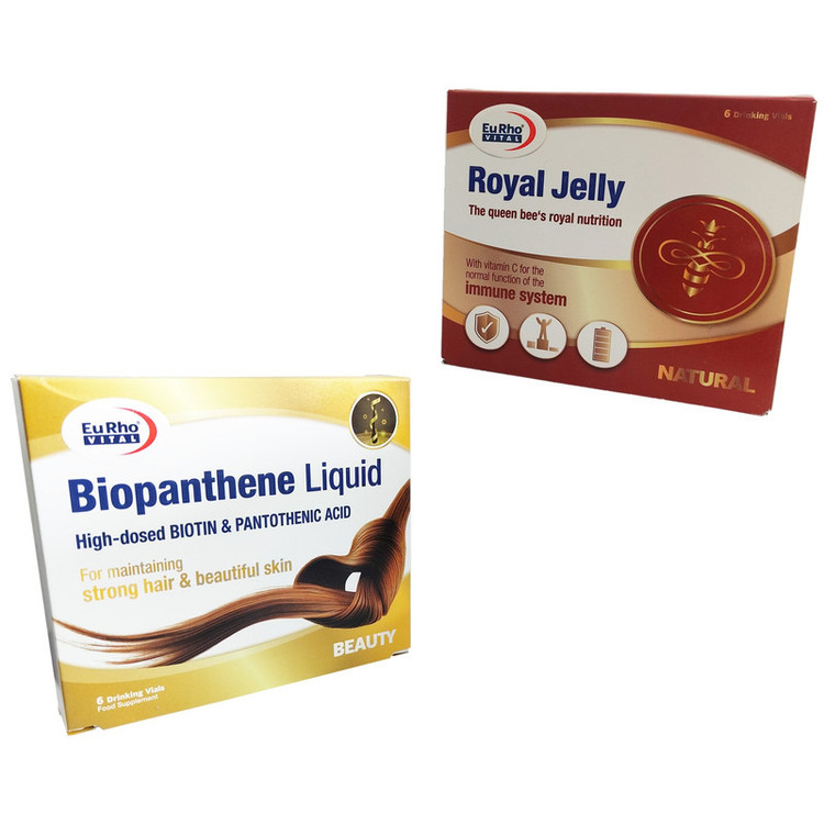 ویال خوراکی رویال ژلی یوروویتال بسته 6 عددی ویال بیوپانتن یوروویتال بسته 6 عددی