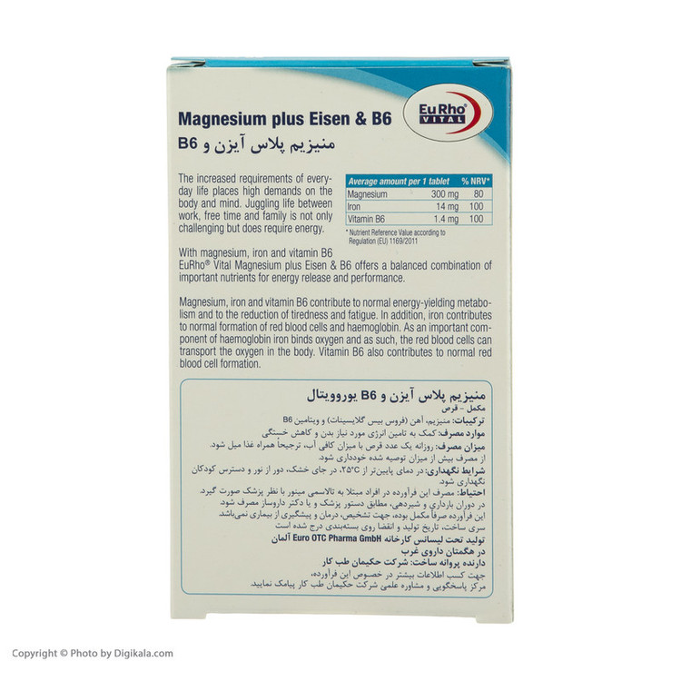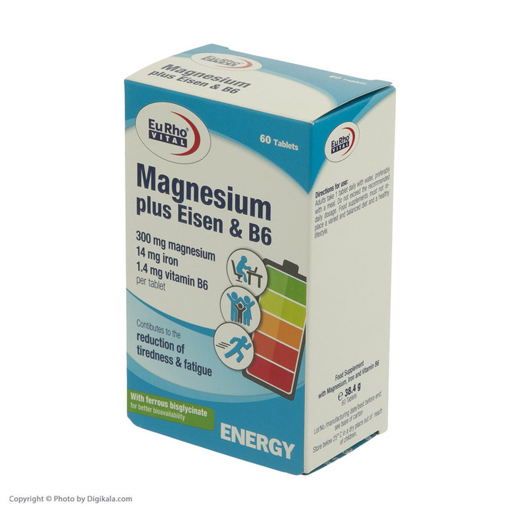 روزانه 1 عدد قرص منیزیم پلاس آیزن و ب6 یوروویتال با میزان کافی آب همراه غذا می شود.