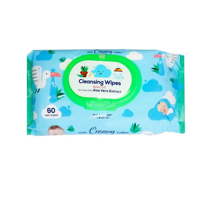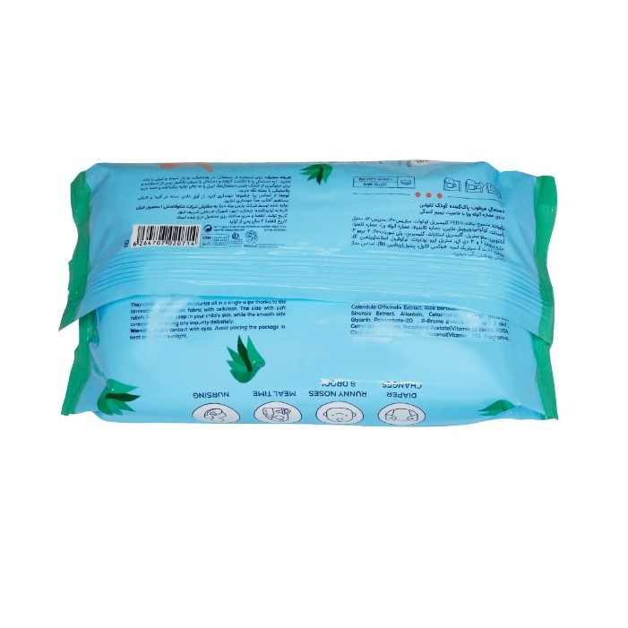 دستمال مرطوب کودک مدل aloe vera بسته 60 عددی