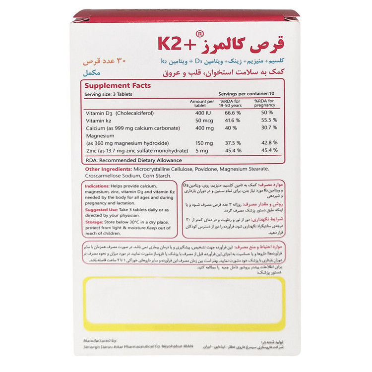 سایر توضیحات: کمک به حفظ سلامت استخوان و دندان