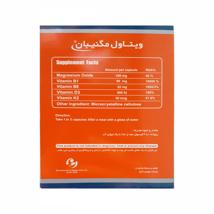 روش مصرف: روزانه 1 یا 2 کپسول بعد از غذا با یک لیوان آب میل شود.