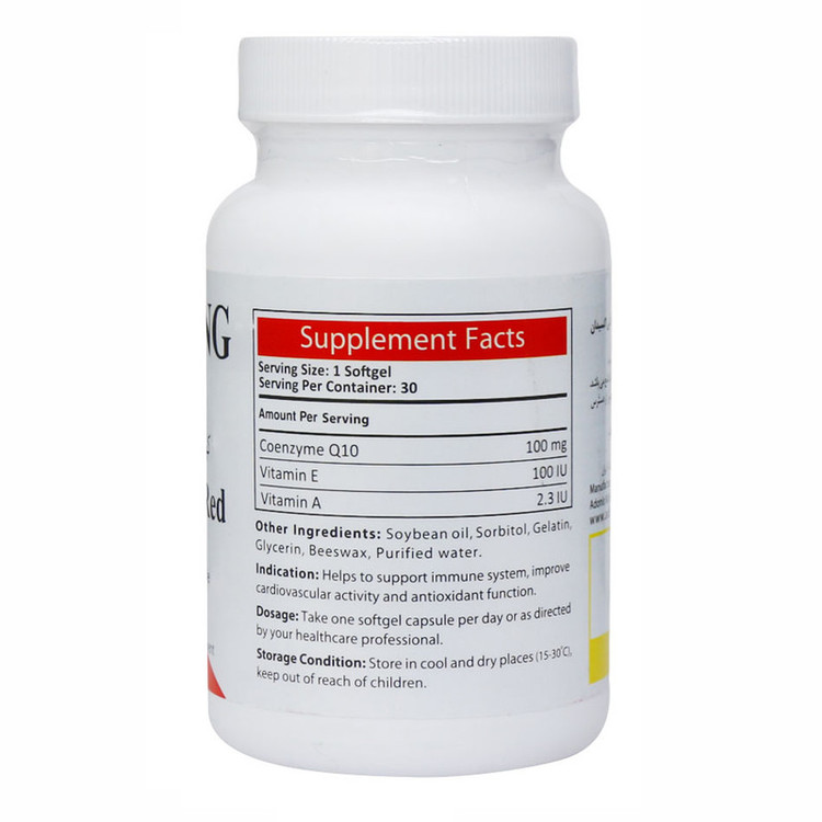 حاوی 100 میلی گرم کوکیوتن قرمز، ویتامین E و ویتامین A کمک به سلامت قلب و عروق، تقویت سیستم ایمنی و آنتی اکسیدان