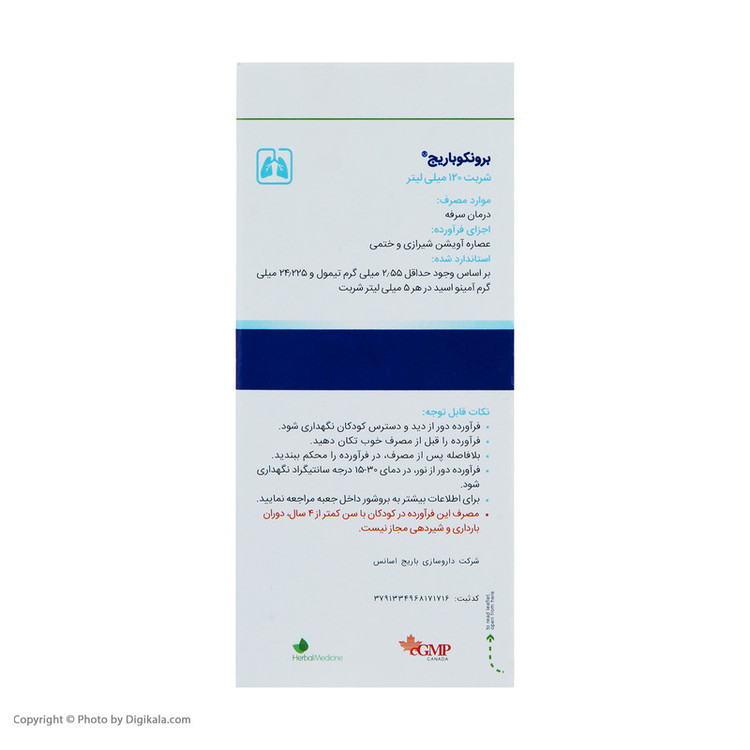 سایر توضیحات: درمان برونشیت و سرفه های همراه با اسپاسم در بیماری سیاه سرفه