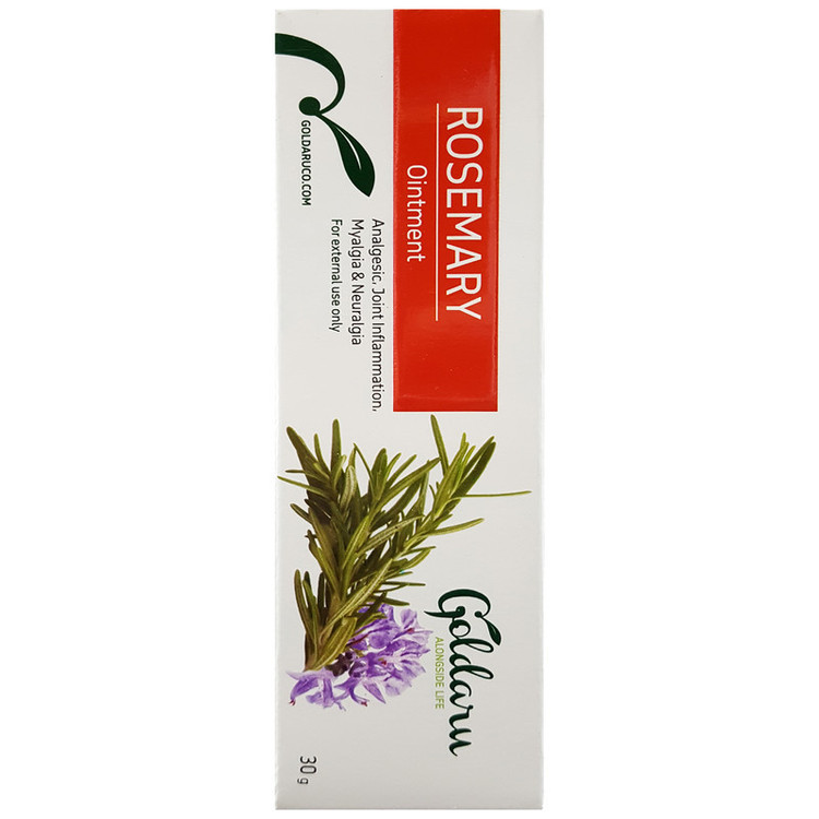 سایر توضیحات: هر گرم پماد محتوی: اسانس رزماری (Rosmarinus officinalis) 80 میلی گرم، کامفر 40 میلی گرم، منتول 40 میلی گرم