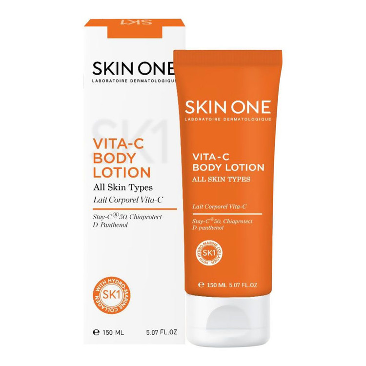 لوسیون بدن ویتا سی اسکین وان، حاوی آنتی اکسیدان قوی و انرژی بخش پوست بوده و علاوه بر آبرسانی بسیار بالا دارای خاصیت ضد چروک و سفت کننده پوست نیز میباشد. لوسیون بدن ویتا سی SKIN ONE، غنی شده با ترکیبات ضد پیری و آنتی اکسیدانهای قوی است که علاوه بر رطوبت رسانی، پوست شما را جوان و شاداب نیز میکند. لوسیون بدن ویتامین سی اسکین وان با تقویت الاستیسیته و استحکام پوست، از پیری زودرس آن جلوگیری میکند. ویتامین C پایدار شده به عنوان ترکیب اصلی در این لوسیون بدن، خاصیت آنتی اکسیدان، شاداب کنندگی و روشن کنندگی دارد و انرژی بخش و محافظ جوانی پوست میباشد. در فرمولاسیون این محصول همچنین از ترکیبات ضد چروک و سفت کننده استفاده شده که برای جلوگیری از افتادگی پوست و کاهش آن به ویژه بعد از دوران بارداری و شیردهی بسیار مفید هستند. لوسیون بدن حاوی آنتی اکسیدان اسکین وان مناسب انواع پوست میباشد.
