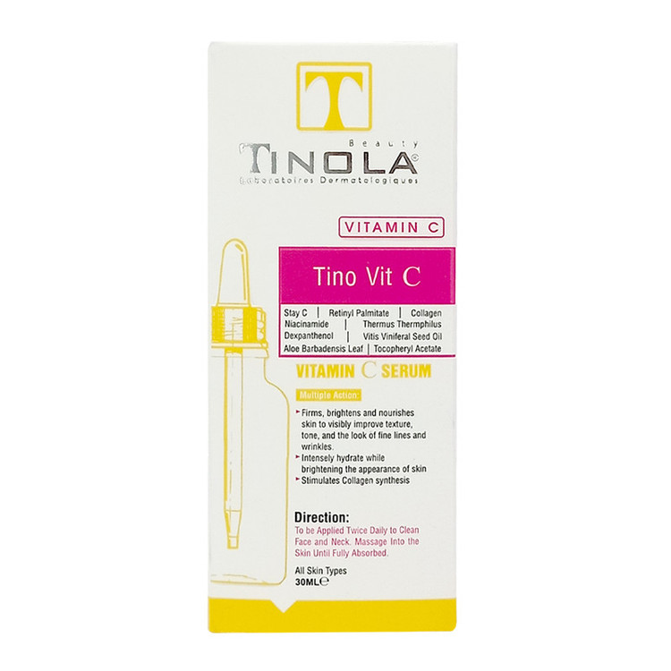 سرم ویتامین C تینولا با دارا بودن عملکرد چندگانه خود علاوه بر درخشان کنندگی و از بین بردن تیرگی های روی صورت،با تحریک سنتز کلاژن سازی و رطوب رسانی عمیق پوست باعث از بین بردن چروک های صورت نیز میشود.