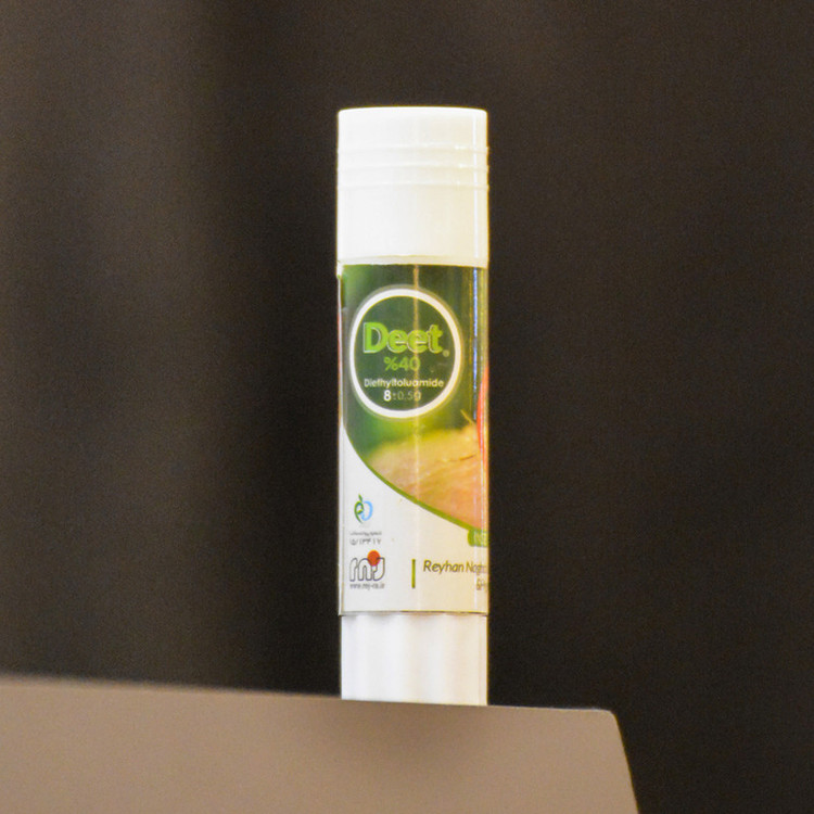 این محصول چرب نبوده با آب شسته می شود. دارای بوی لیمو و جذب ناچیزی دارد و می توان در منزل و بیرون از منزل داخل پارک و جنگل، کنار رودخانه و دریا استفاده نمود. قابل حمل در جیب و کیف بوده و با باز نمودن در آن و پیچاندن قسمت ته ظرف آن را بر روی بدن بدون ماساژ دادن بکشید. برای مناطقی که سالک و مالاریا دارند برای پیشگیری لازم است و مورد تایید و تاکید معاونت بهداشتی وزارت بهداشت و درمان می باشد. فراورده های دافع حشرات دیت Insect repellents DEET دیت ( دی اتیل متا تولامید N, N-Diethyl-meta-toluamide) یک ماده ی شیمیایی دافع حشرات با طیف گسترده است که برای استفاده روی بدن انسان و اسب ها جهت دفع انواع پشه، پشه خاکی، پشه مالاریا، کک ها، کنه ها، ساس، انواع خرمگس .خرمگس های گزنده، مگس های قرمز گزنده، مگس های جنگلی (دراکولا) مورد استفاده قرار میگیرد. دیت از سال 1957 میلادی به طور مستمر به عنوان ماده ی موثر در دور کردن حشرات و جلوگیری از ابتلا و انتقال بیماری هایی که ناقل آن ها این حشرات هستند از جمله بیماری سالک، لایم ، مالاریا ، تب زرد ، تب دنگ و آنسفالیت مورد استفاده قرار گرفته است. این ماده بویژه در اصطبل ها برای جلوگیری از آزار اسب ها توسط انواع حشرات موذی بسیار موثر است. قلم دافع حشرات دیت برای اولین بار در کشور پس از حدود 15 سال مطالعه و تحقیق توسط شرکت دانش بنیان داروسازی ارایشی بهداشتی ریحان نقش جهان از سال 1384 با نام تجارتی دیت (DEET) وارد بازار داروئی کشور شده و برای جلوگیری از آزار نیش حشرات، همچنین پیشگیری از بیماری های مربوط به حشرات مانند سالک و مالاریا مورد تایید اداره مبارزه با بیماری های غیر وگیر وزارت بهداشت و درمان قرار گرفت و برای استفاده در داروخانه ها، مراکز بهداشتی توزیع میشود. موارد استفاده فراورده های دافع حشرات مانند قلم دافع حشرات دیت ( 40% ) را می توان روی پوست کودکان بالای شش ماه و سایر افراد برای جلوگیری از نیش ناشی از پشه ها ، کنه ها و سایر حشرات گزنده، بکار برد. نحوه اثر دیت دانشمندان دقیقاً چگونگی اثر دیت بر روی طیف گسترده حشرات را نمی دانند. به نظر میرسد برخی از حشرات با شناسایی مواد شیمیایی موجود در بدن و هوای تنفسی موجودات آن ها را شناسایی میکنند
