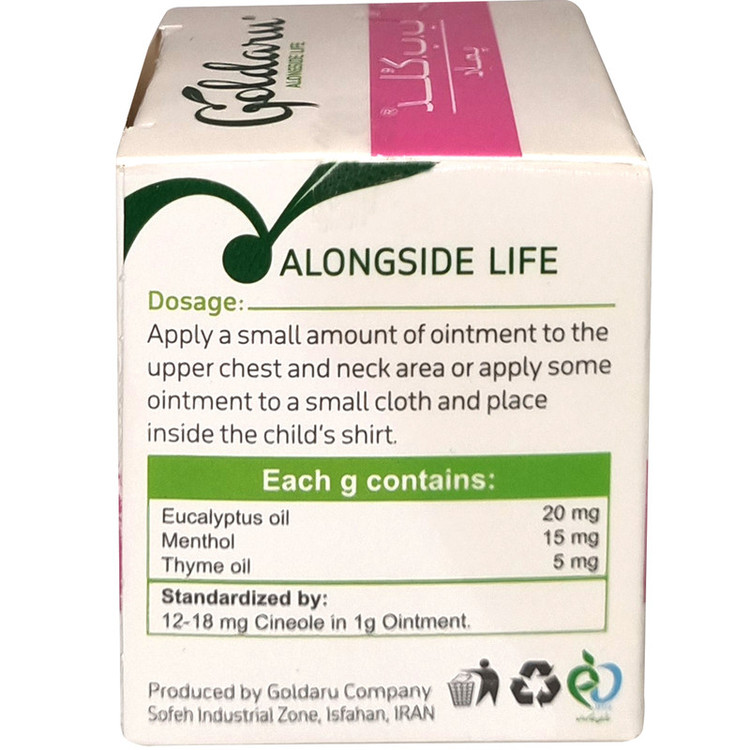 روزانه چند نوبت به صورت موضعی در ناحیه سینه و گردن استعمال شود. و یا با دستمال آغشته به پماد در لباس کودک قرار داده شود.