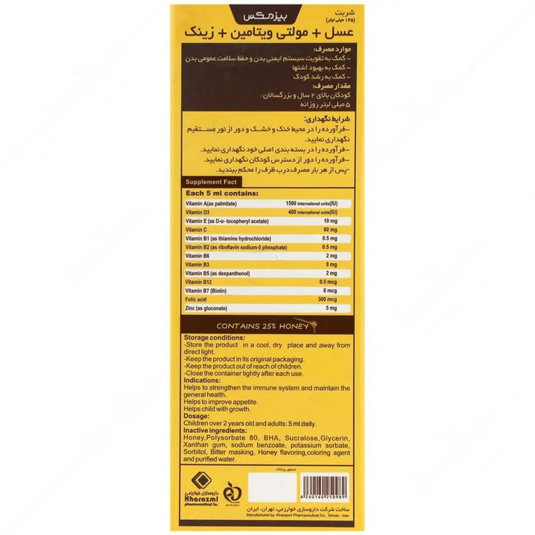 روش مصرف: روزانه 5 میلی لیتر