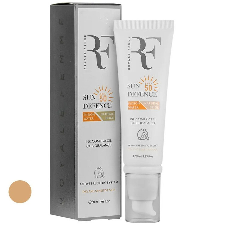 کرم ضد آفتاب رنگی آر.اف رویال فم SPF50 مدل Fusion Water مناسب برای پوست خشک و حساس حجم 50 میلی لیتر