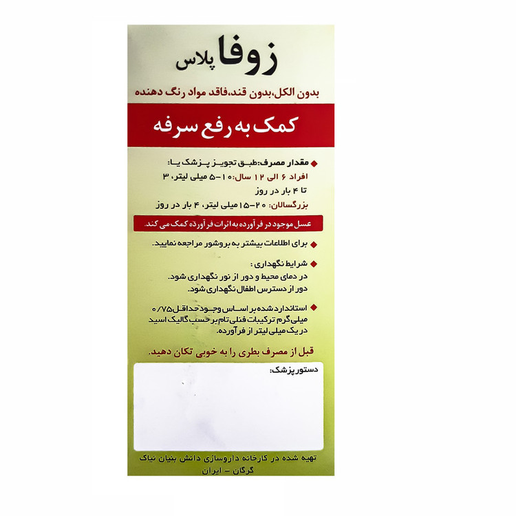 روش مصرف: افراد 6 الی 12 سال : 10-5 میلی لیتر 3 -4 بار در روز