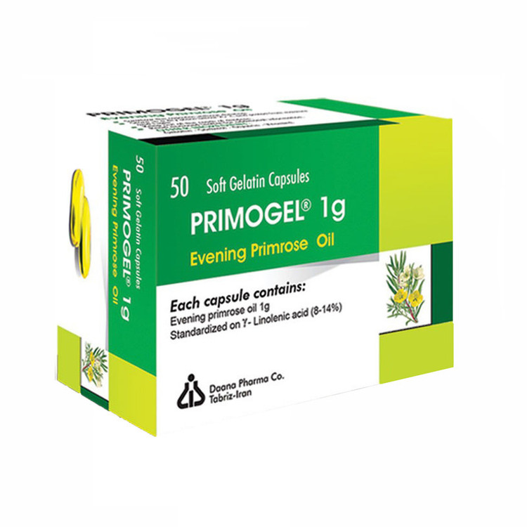 حاوی 1 گرم روغن گل مغربی استاندارد شده بر پایه گاما-لینولنیک اسید (% 14-8)