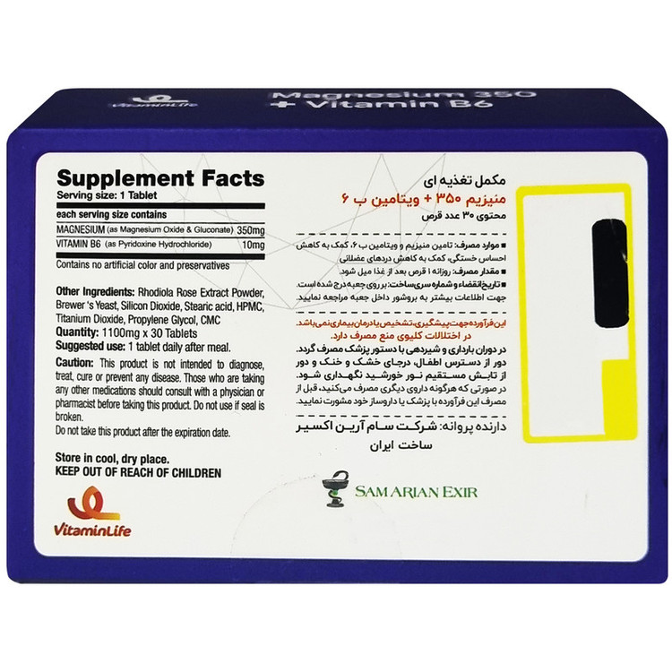 نوع ویتامین و مواد معدنی: منیزیم , ویتامین B