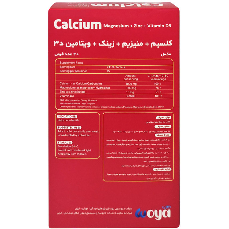 نوع ویتامین و مواد معدنی: روی , کلسیم , منیزیم , ویتامین D , زینک , ویتامین D3