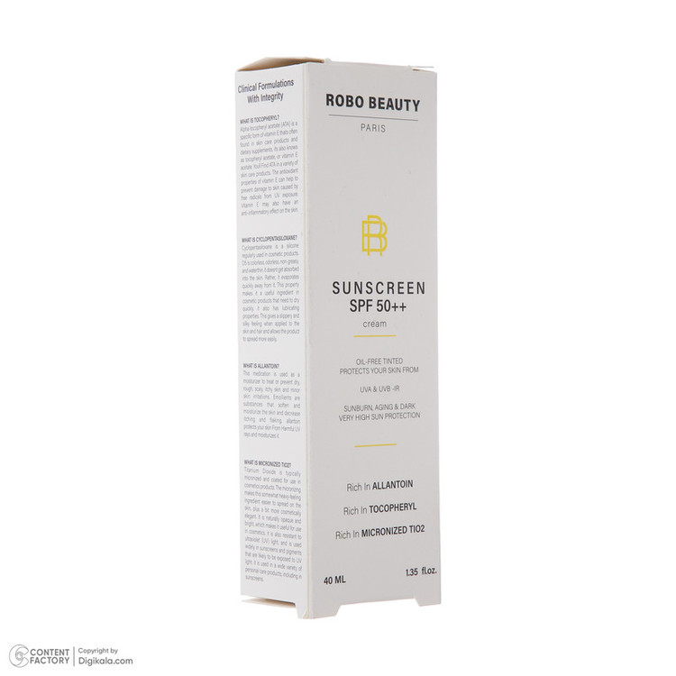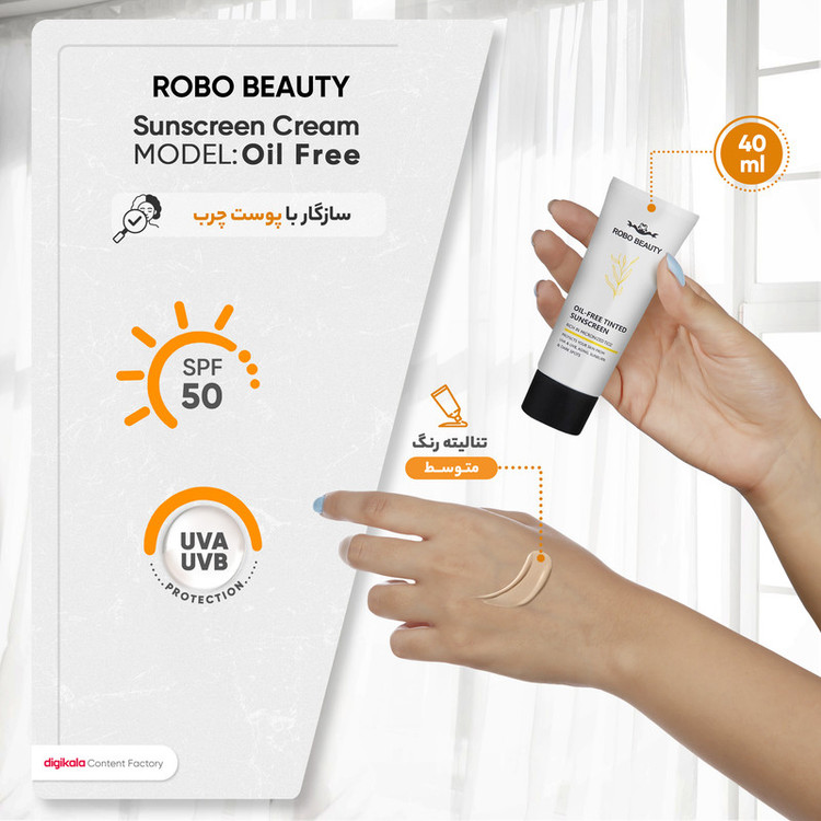 کرم ضدآفتاب رنگی SPF50 روبو بیوتی مدل Oil Free مناسب پوستهای چرب، حجم 40 میلیلیتر