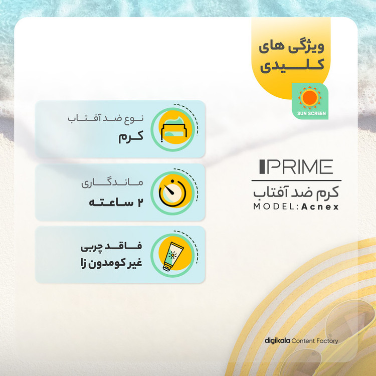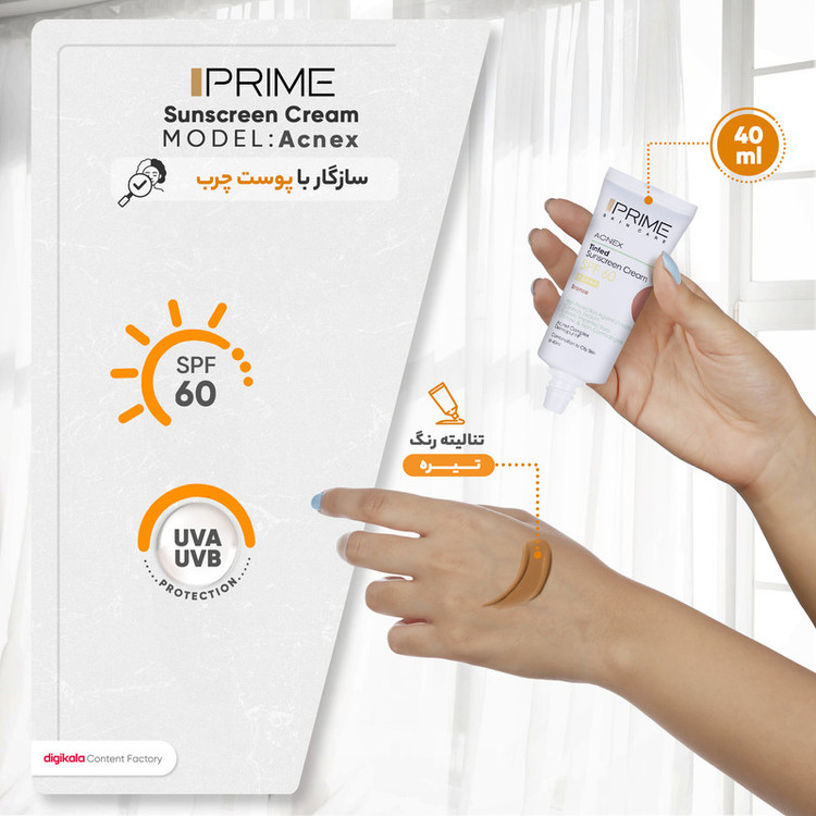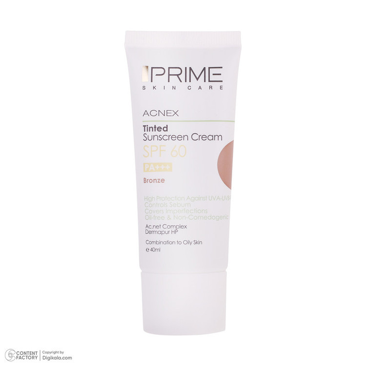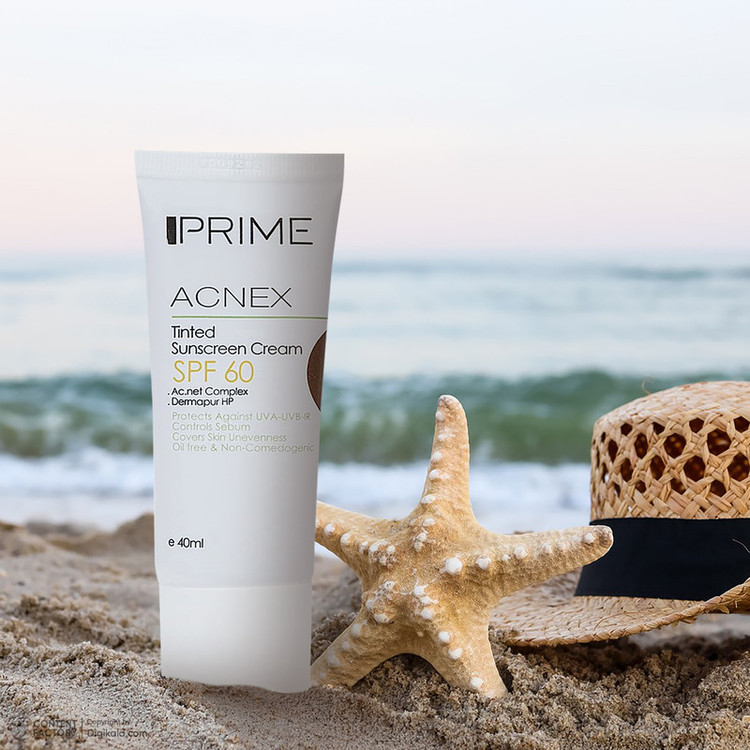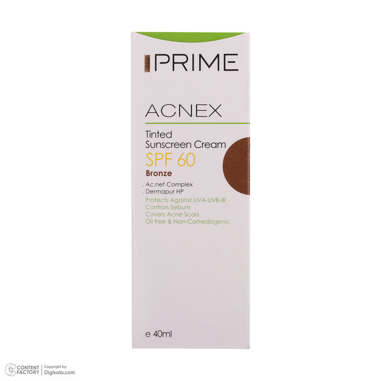 کرم ضدآفتاب رنگی پرایم مدل Acnex SPF60، مناسب پوستهای چرب، حجم 40 میلیلیتر