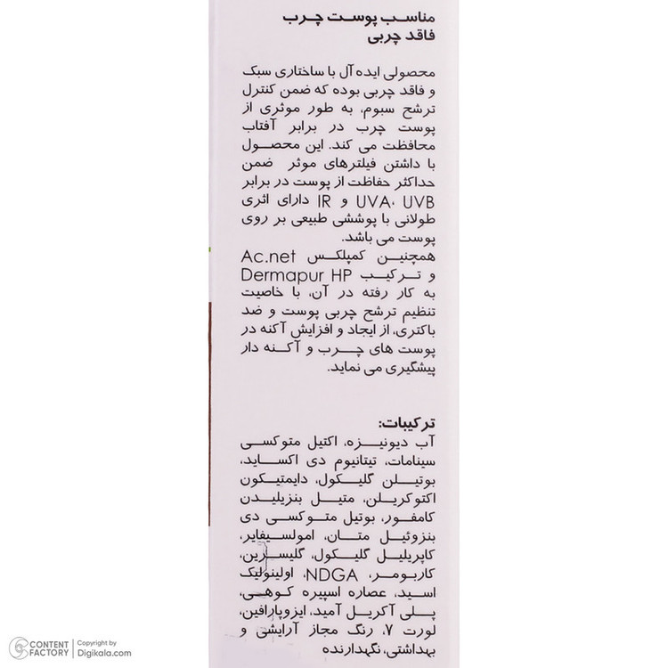 کرم ضدآفتاب رنگی پرایم مدل Acnex با SPF60، یک محافظ قدرتمند برای پوستهای چرب است که به طور ویژه برای محافظت از پوست در برابر اشعههای مضر UVA و UVB طراحی شده است. این محصول با فرمولاسیون فاقد چربی و غیرکومدونزا، از مسدود شدن منافذ پوست جلوگیری کرده و از بروز جوش و آکنه جلوگیری میکند، در حالی که پوششی یکنواخت و طبیعی به پوست میبخشد. با توجه به ویژگیهای منحصربهفرد این کرم، از جمله رنگی بودن آن، میتوانید از آن به عنوان یک بیس آرایشی استفاده کنید تا در کنار محافظت از پوست، ظاهری صاف و یکنواخت داشته باشید. کرم ضدآفتاب پرایم مدل Acnex، نه تنها پوست شما را در برابر اشعههای مضر محافظت میکند، بلکه به کاهش و کنترل چربی اضافی پوست نیز کمک میکند، و این ویژگی آن را به انتخابی ایدهآل برای پوستهای چرب و مستعد جوش تبدیل کرده است. اگر به دنبال یک ضدآفتاب با پوشش رنگی و بالاترین سطح محافظت هستید، کرم ضدآفتاب پرایم مدل Acnex با ترکیبات تخصصی و فاقد چربی، بهترین انتخاب برای شماست.