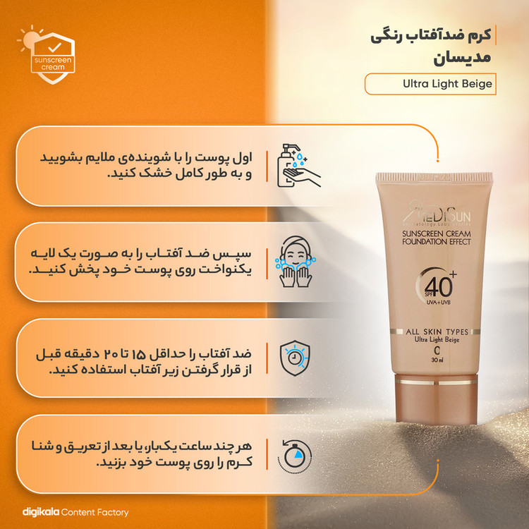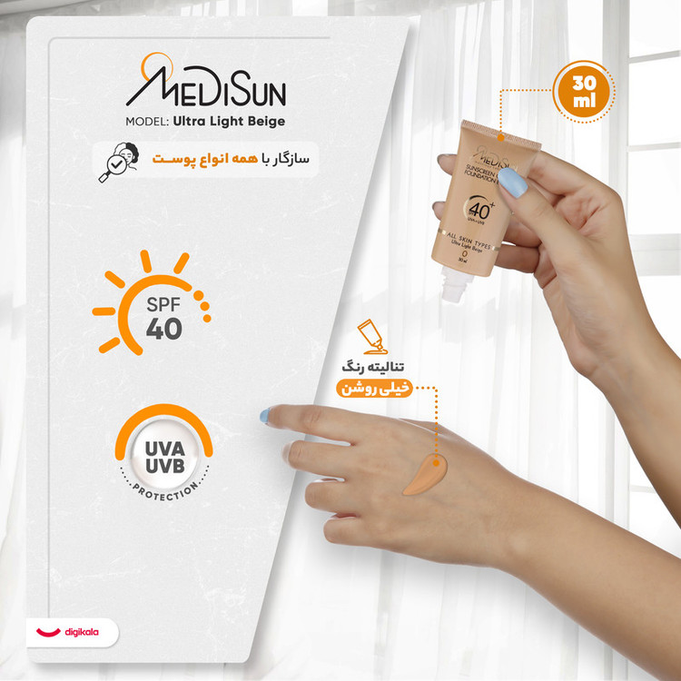 کرم ضدآفتاب رنگی مدیسان با پوشش کرم پودری حاوی spf 40 ، حجم 30 میلیلیتر