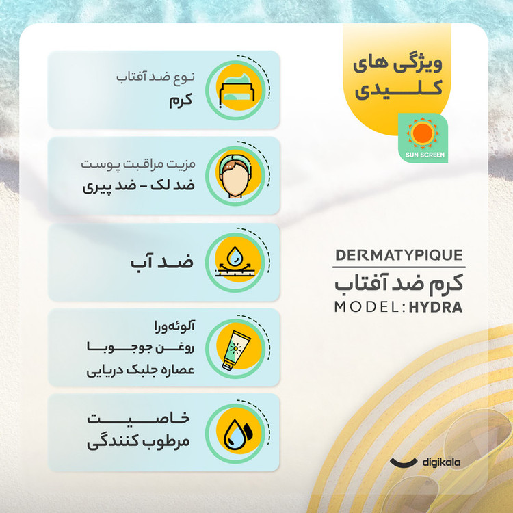 ویژگیهای ضدآفتاب : ضد آب , محافظت کننده در برابر اشعه UVA , مرطوب کننده